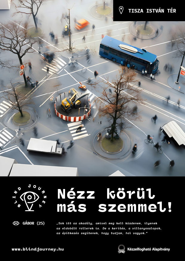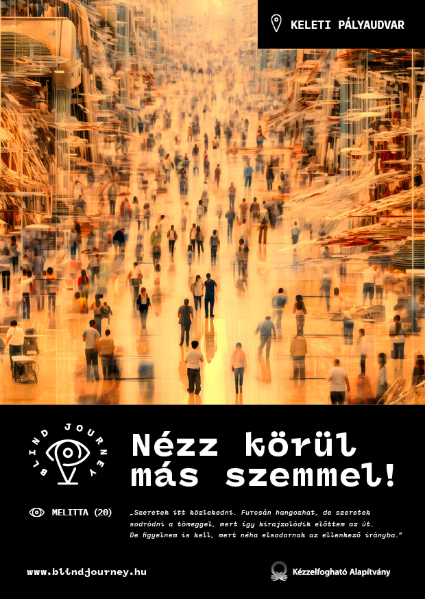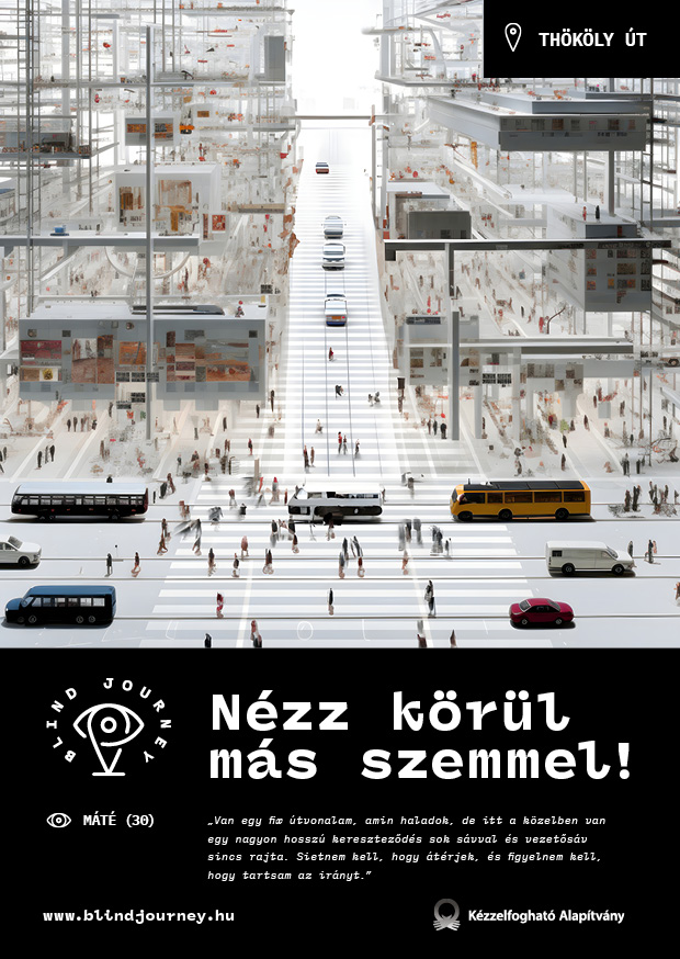 Nehéz elképzelni, hogyan érzékelik a körülöttünk lévő világot azok, akik születésüktől fogva vakok. Így sokszor lehetsz bizonytalan, hogyan fordulj hozzájuk, hogyan teremts velük kapcsolatot. Ezért hívtuk segítségül a mesterséges intelligenciát, hogy hét születésétől fogva vak ember meg tudja mutatni, hogyan érzékelik Budapest forgalmas csomópontjait, ahol te is és ők is, nap mint nap megfordultok. Nézd meg az alkotásaikat, utazz velük, fedezd fel, ők hogyan látják a világot, és mindig jusson eszedbe amikor a városban vagy, hogy nézz körül más szemmel is, és segíts ott, ahol tudsz!